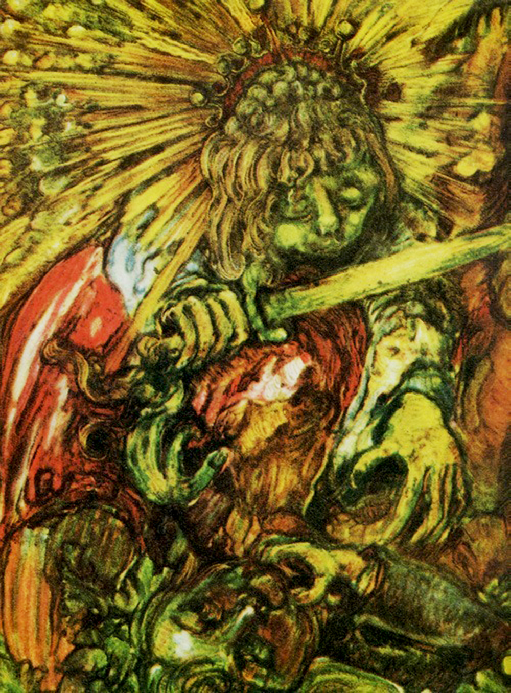 Franz Polh (1868–1940): El ángel exterminador, lápices de colores sobre papel, Colección Prinzhorn, Heidelberg.